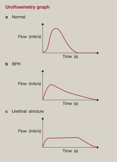 Uroflowmentry: Flow profile of a patient is often enough to clench the diagnosis. The graph from a stricture urethra patient has an extended urination time with a low-level plateau .The shape of this curve is pathognomonic of urethral stricture disease.